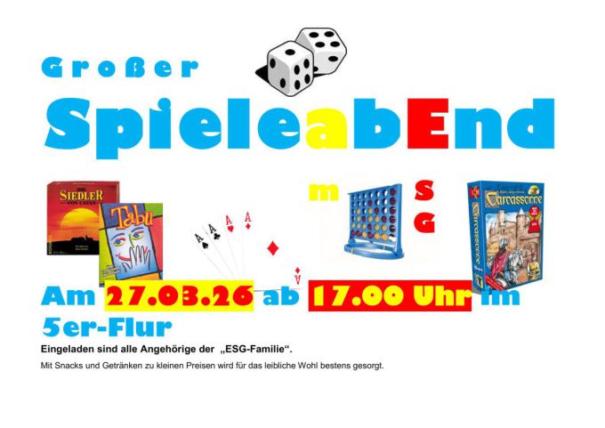 wir möchten recht herzlich zum zweiten “Großen Spieleabend“ 2026 an unserer Schule einladen.