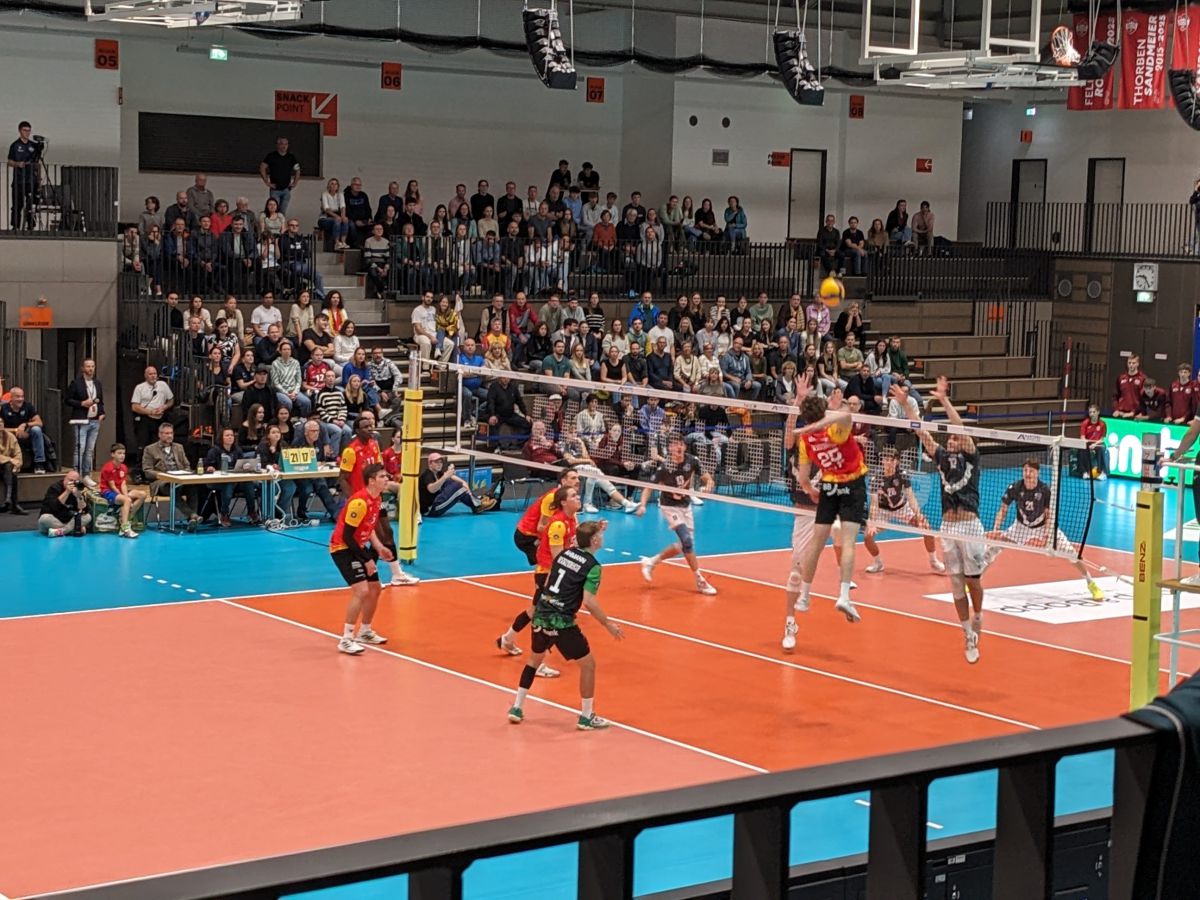 Bei einem Volleyball-Workshop bei den Baden-Volleys in Karlsruhe durften die Schülerinnen und Schüler der jetzigen 10a des ESG im Sommer gemeinsam mit Profis der Bundesliga-Mannschaft spielen und trainieren. Als Zugabe hatte es darüber hinaus die Einladung zu einem Spiel der ersten Mannschaft in der Volleyball-Bundesliga gegeben. Am vierten Spieltag nach der Sommerpause durften die Workshop-Teilnehmer nun schließlich in die Lina-Radke-Halle nach Karlsruhe kommen, um das Spiel der Baden-Volleys gegen den VCO Berlin live und vor Ort bestaunen zu können. Gegen die Gäste aus Berlin feierten die Badener vor knapp 700 Zuschauern einen unangefochtenen Sieg in 3:0 Sätzen und nahmen damit den vierten Tabellenplatz ein.